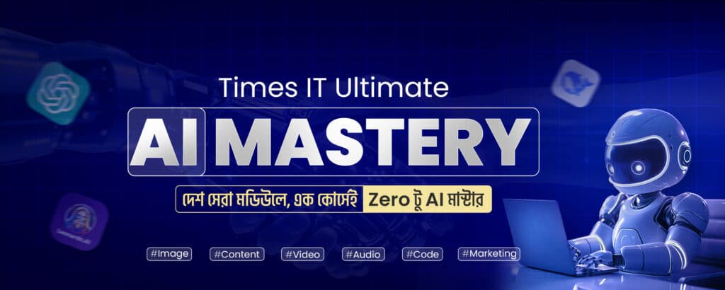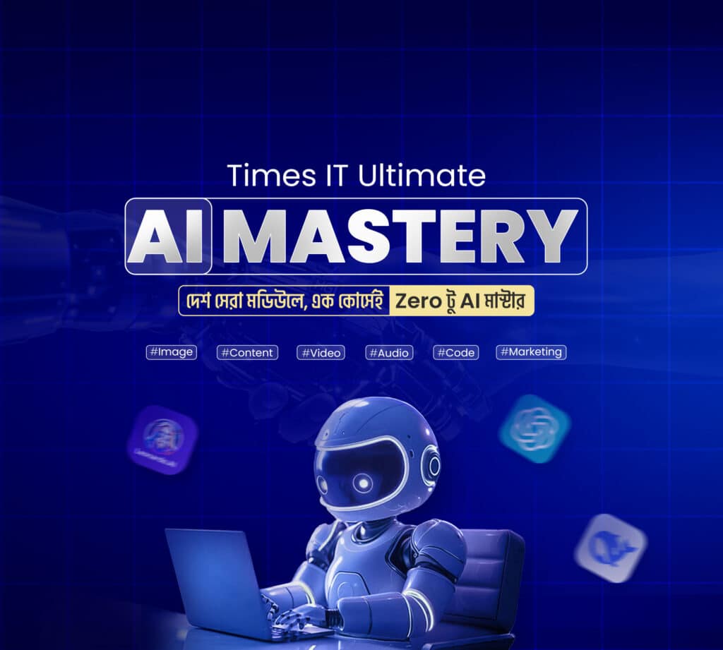 বর্তমান সময়ে প্রযুক্তি ও AI আমাদের জীবন, কাজ, এবং ব্যবসার প্রতিটি ক্ষেত্রে বিপ্লব ঘটাচ্ছে। “Times IT Ultimate AI Mastery” কোর্সটি আপনাকে AI এর মৌলিক ধারণা থেকে শুরু করে উন্নত ব্যবহারের কৌশল শেখাবে, যা আপনার কর্মজীবনকে এক নতুন মাত্রায় নিয়ে যাবে। এই কোর্সের মাধ্যমে আপনি AI এর জাদু এবং এর সঠিক ব্যবহার শেখার সুযোগ পাবেন, যা আপনাকে স্পেশালিস্ট হিসেবে গড়ে তুলবে।