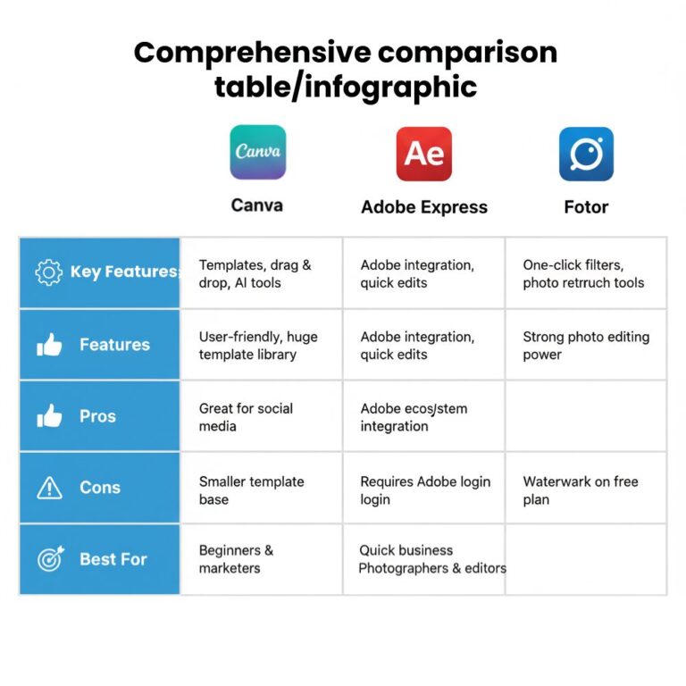 • Adobe Express: AI-powered design suggestions, auto-resize