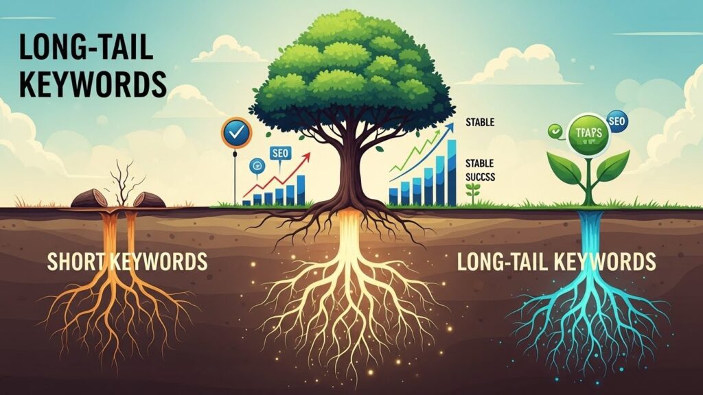 তৃতীয়ত, এটি টার্গেটেড ট্রাফিক নিয়ে আসে। যারা আপনার সাইটে আসবে, তারা আপনার পণ্য বা সেবায় আগ্রহী হবে। ২০২৫ সালের পরিসংখ্যান অনুযায়ী, সমস্ত সার্চ কোয়েরির ৭০% এরও বেশি লং-টেইল টার্ম। আরও মজার ব্যাপার হলো, সাম্প্রতিক SEO ডেটা দেখাচ্ছে যে সার্চ ইঞ্জিনে মানুষ যে কিওয়ার্ড টাইপ করে তার ১০টির মধ্যে ৯টিই লং-টেইল কিওয়ার্ড।